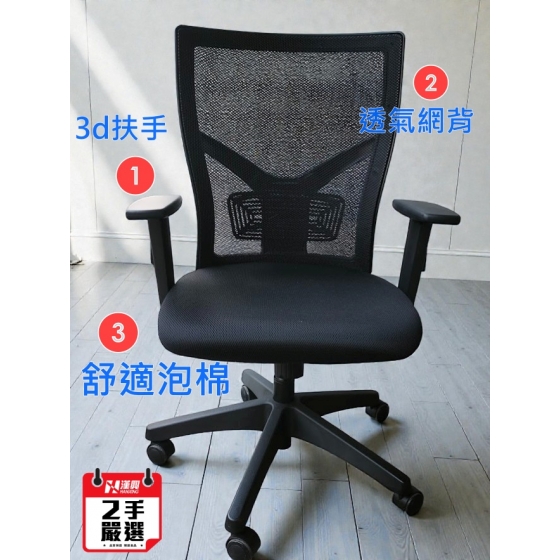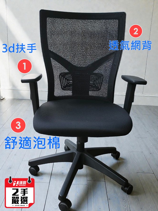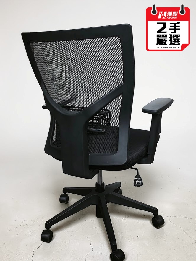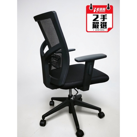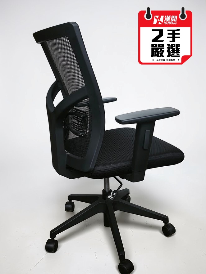 【 漢興二手OA辦公椅 】中階職員 透氣黑色辦公網椅+升降後仰