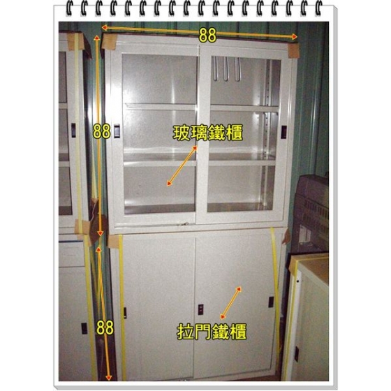 ● 公文櫃高176公分*寬88公分*40深(上玻框+下拉門)
