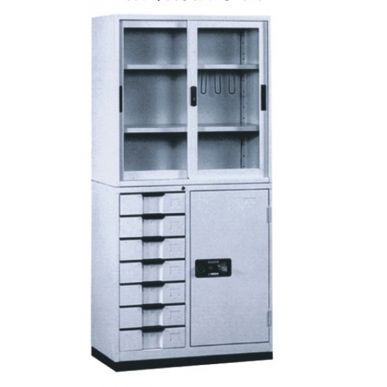 ●全新公文櫃(上玻璃鐵櫃)+(下邊七抽鐵櫃)