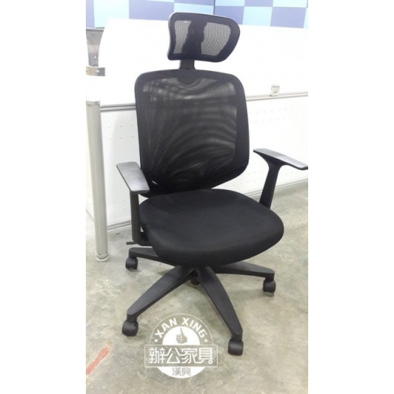 平價主管辦公椅高背扶手網椅+透氣網背+可調式頭枕+黑布坐墊處理