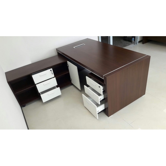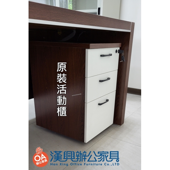 特製桌面下訂製有1個活動木櫃+滑動側櫃一個