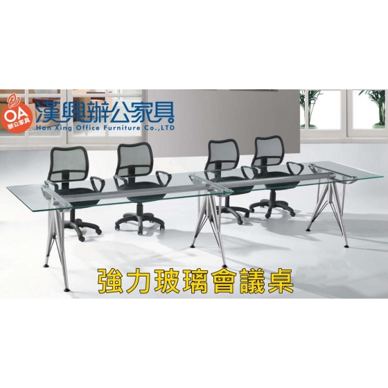 全玻璃面霧面會議桌.3支強力雙著地造型腳+特級支撐橫桿.鎖住桌面