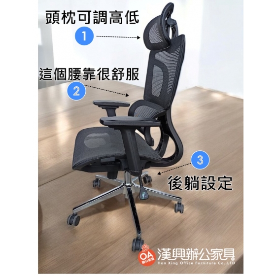 扶手可升降調整 +後仰無段角度.可後躺設定