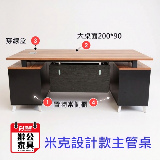 漢興土城OA【創業吧.老闆 】米克 大氣磅薄主管桌 200*90公分