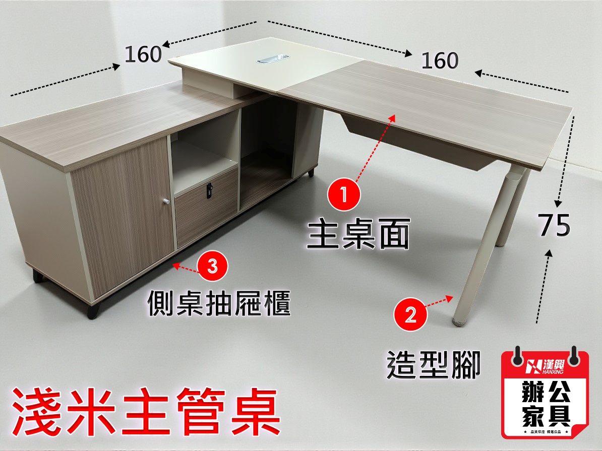 漢興OA【創業吧.老闆 】清淡優雅主管桌+有側櫃