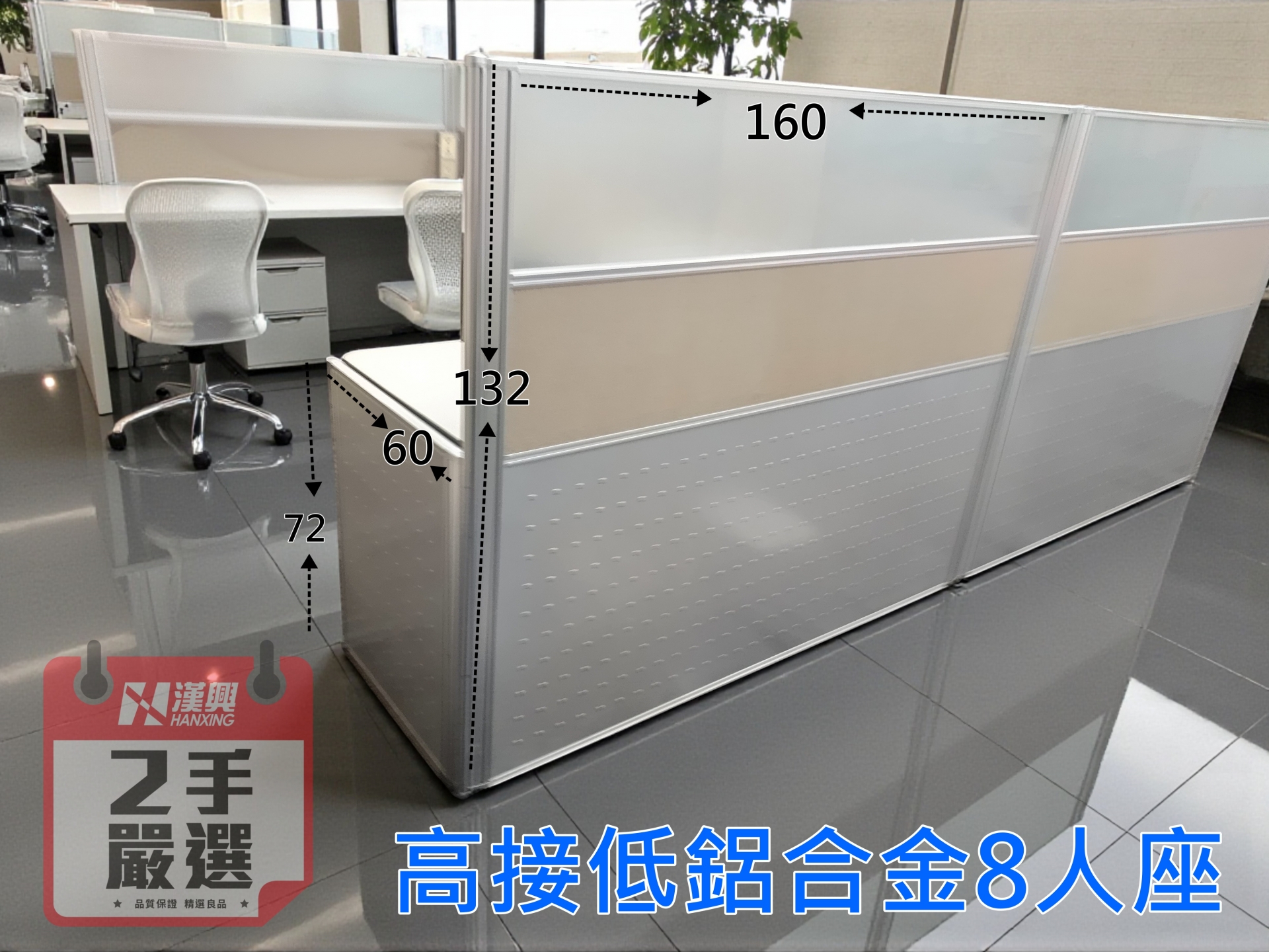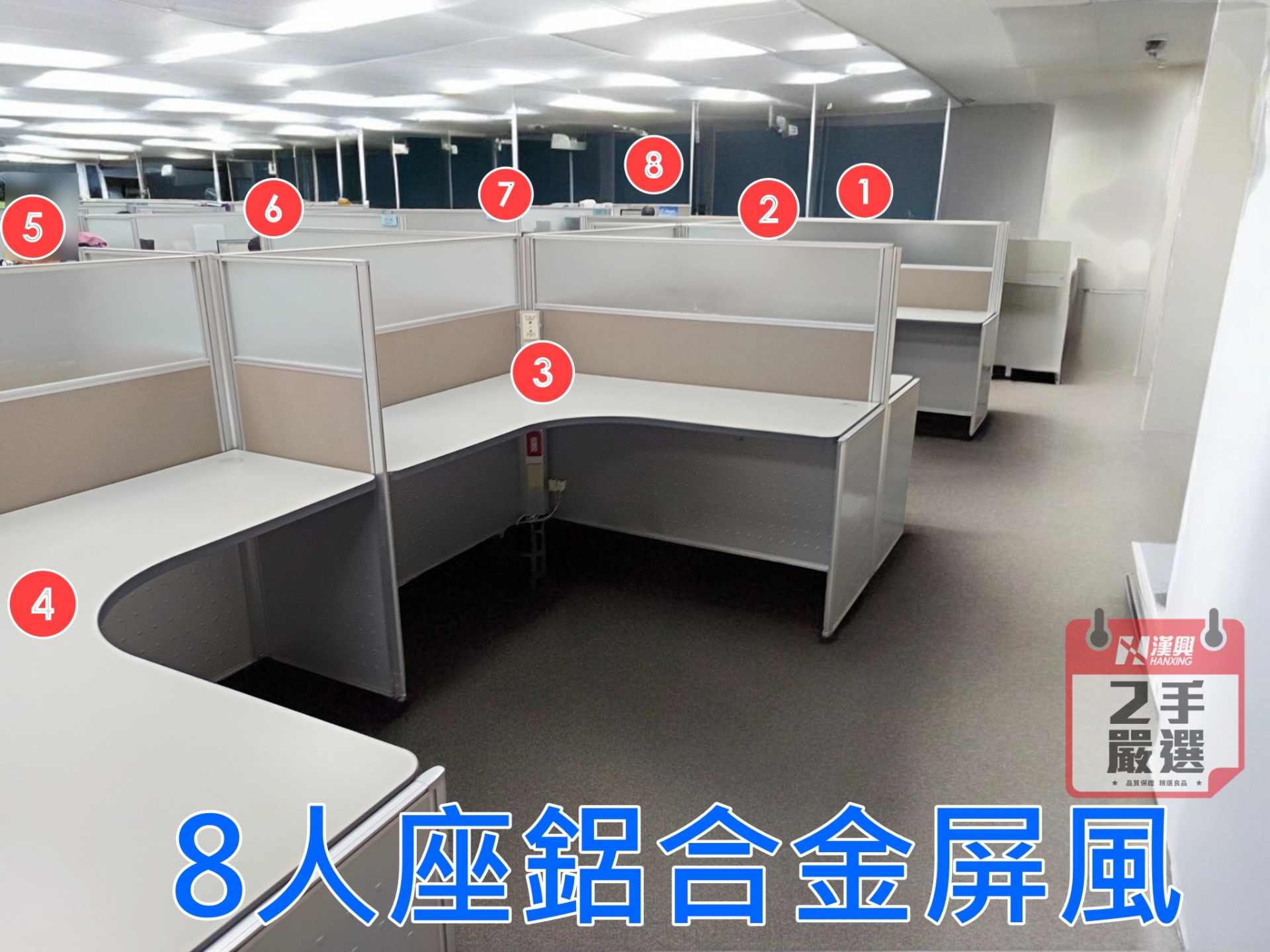 漢興二手OA【找OA隔間看這裡 】8人座串聯2.5鋁合金屏風