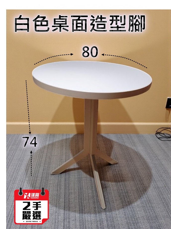 (1)圓桌 (白色80*74桌面+造型白色腳)