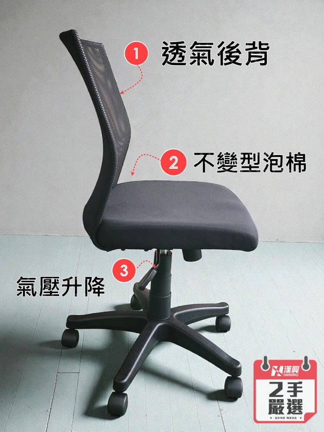 【 漢興專業二手OA 】平價耐用 透氣黑色辦公網椅