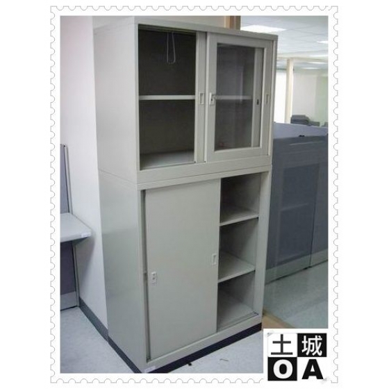 ● 理想公文櫃上玻璃+下櫃鐵拉門~~整套新品