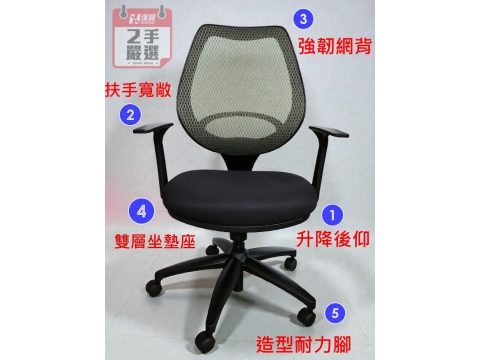 【 漢興二手OA辦公椅 】中階職員 透氣黑色辦公網椅+升降後仰