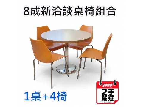 漢興土城OA【創業吧.老闆 】8成新的洽談木紋桌+4張橘色洽談椅