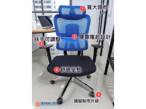 【漢興OA全新辦公家具】 中階平價暢銷透氣網椅 扶手+氣壓升降+頭枕