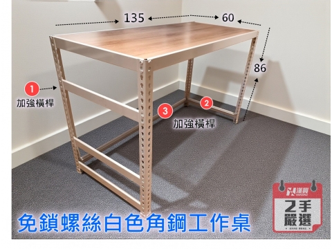 漢興二手OA【免鎖螺絲工作臺 】二手白色置物層架 180*150*45
